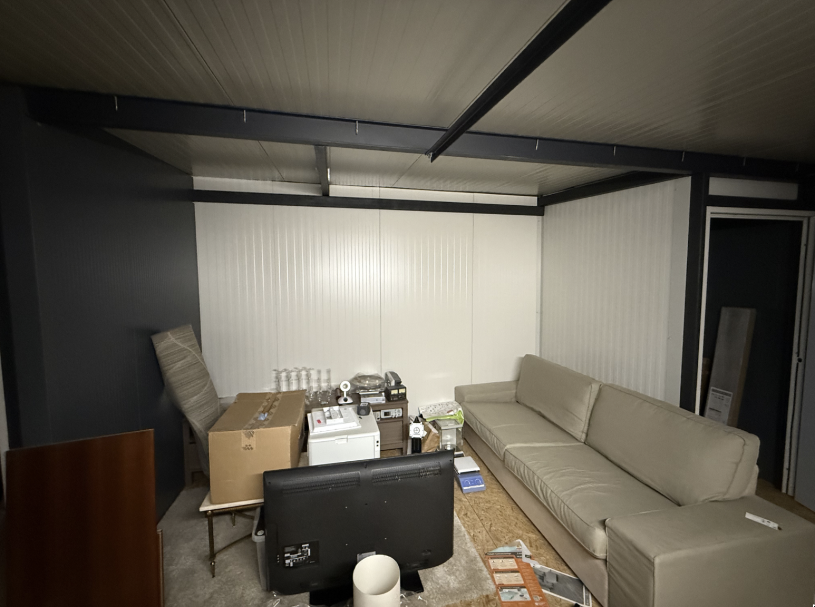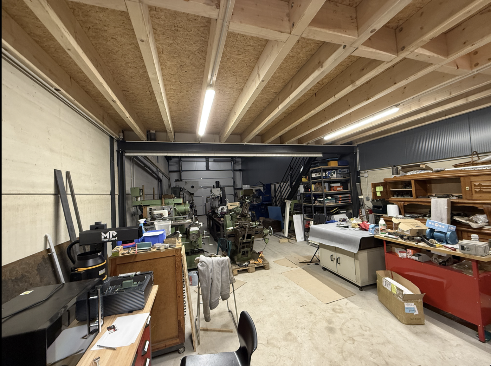 - Sous mezzanine : 4 prises monophasées + interrupteur éclairage