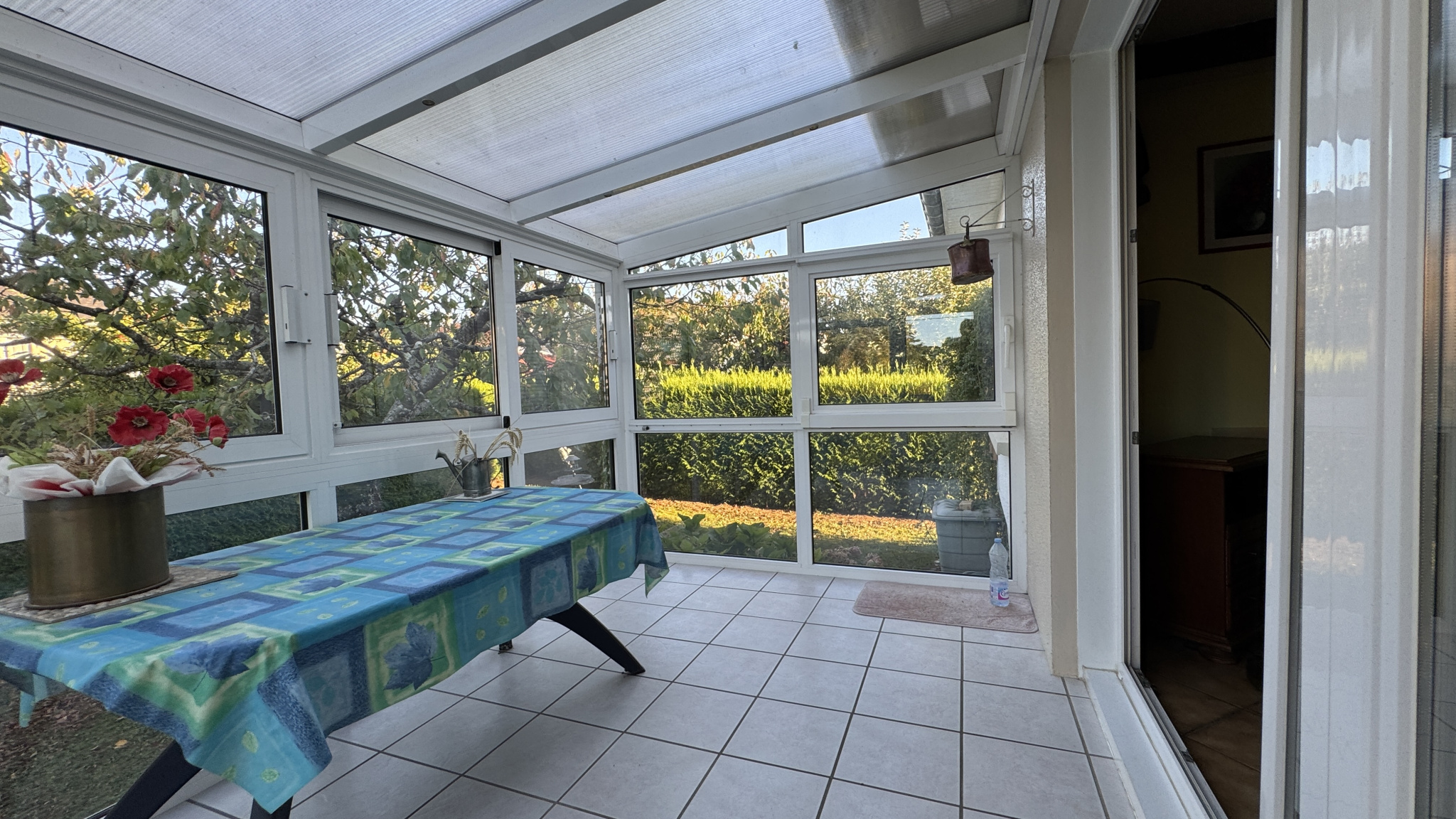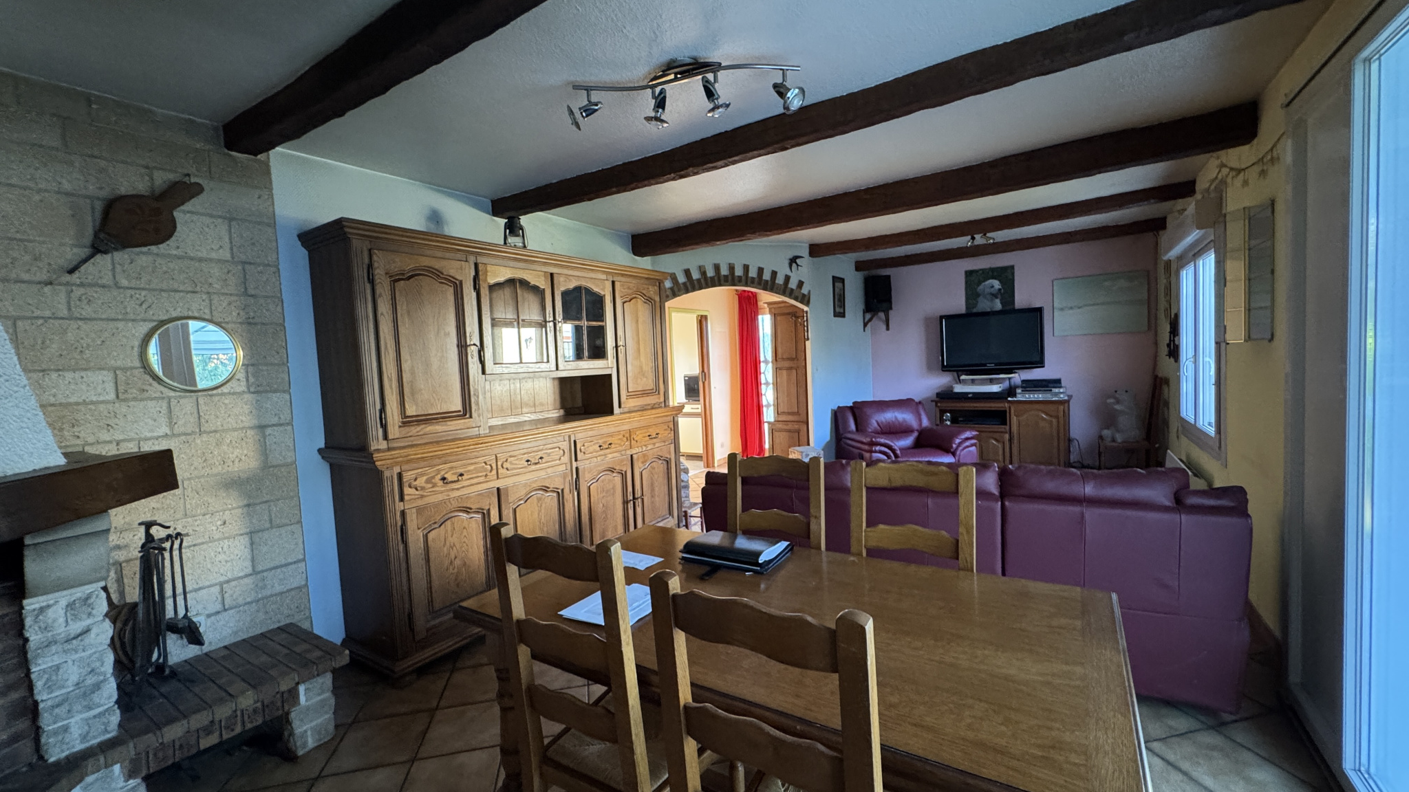 - - living, salon, sale à manger lumineux ayant accés à la veranda sur le jardin